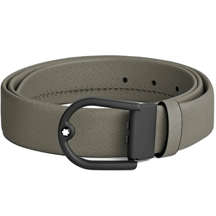 Кожаный ремень 35 мм из кожи серого цвета, пряжка в форме подковы от магазина премиальных ручек Premium Pens в Ижевске.
